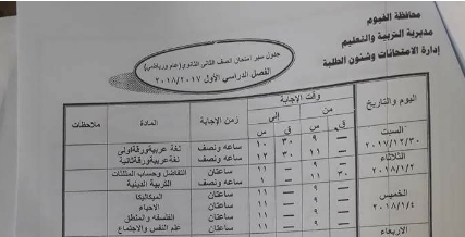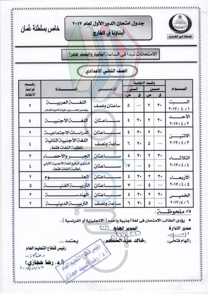 جدول امتحانات ابناؤنا في الخارج 2017