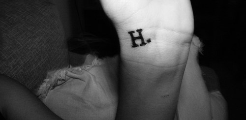 حرف H مكتوب على اليد